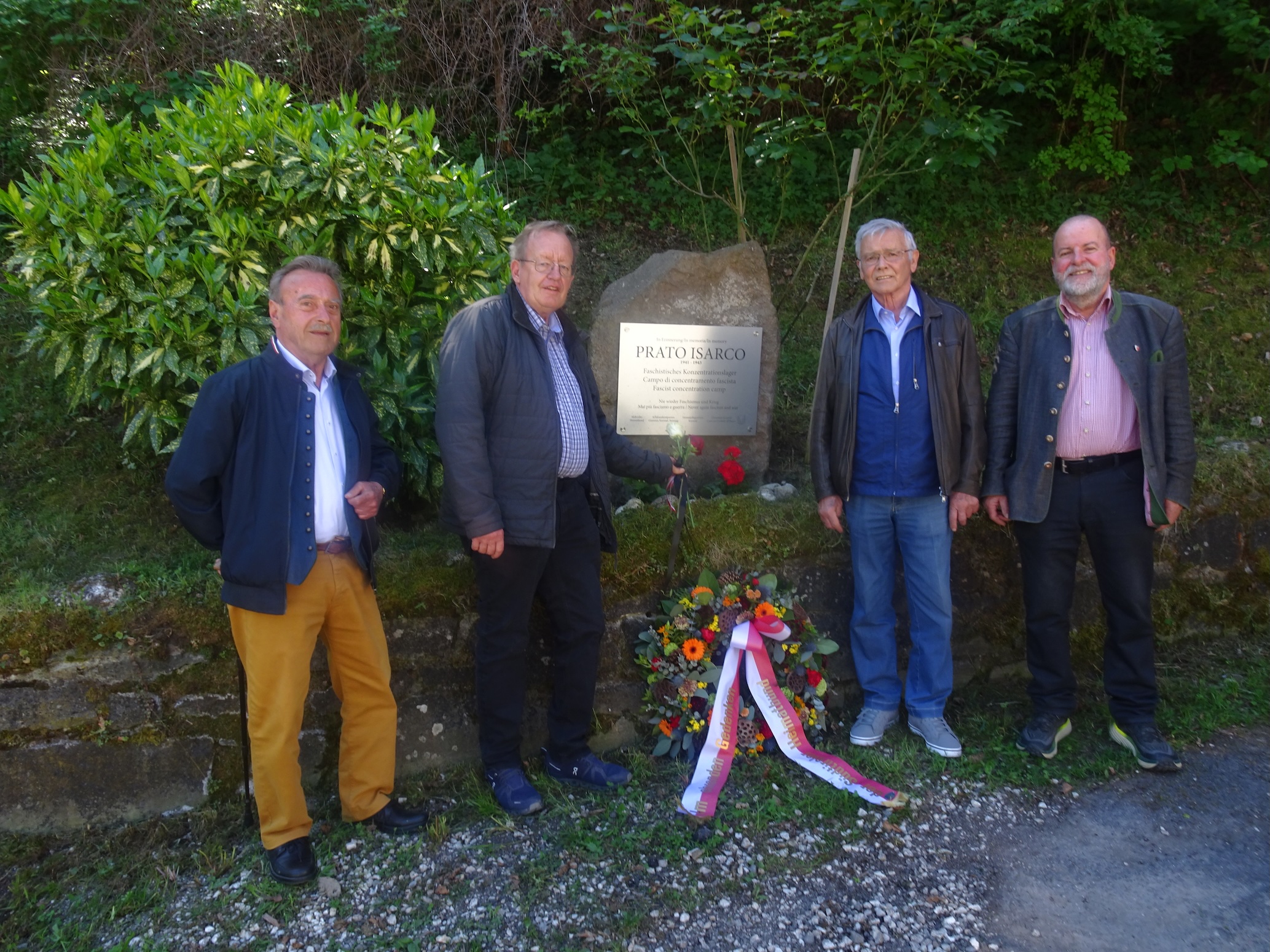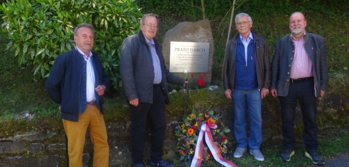Einen Kranz für die Internierten des KZ Campo Isarco, aber auch 2 Rosen mit schwarzer Trauerschleife für einen verlorenen Freund, so beging eine Delegation des SHB beim Gedenkstein in der Breienstraße in Blumau den sogenannten Tag der Befreiung.