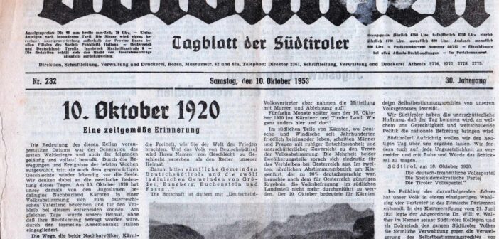 Es wäre dem Land viel Leid erspart geblieben, wenn Südtirol so wie Kärnten am 10. Oktober 1920 in einer freien Volksabstimmung sein Schicksal selbst hätte entscheiden können, so der SHB.